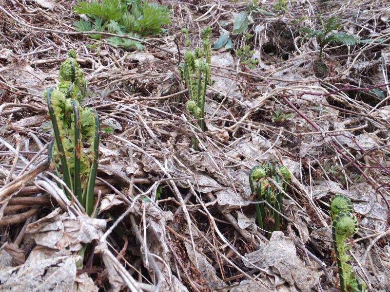 GW後半になり、ようやく天気も落ち着きました。この陽気に誘われて、山菜も顔を出し始めたよ。いよいよこれから山菜シーズン到来です。
