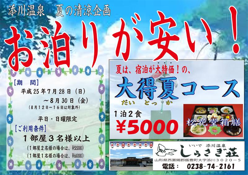 大変リーズナブルな「大得夏コース」です。