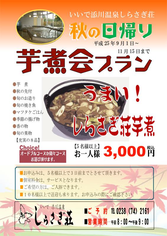 ▼しらさぎ荘 秋の芋煮プランのお・し・ら・せ