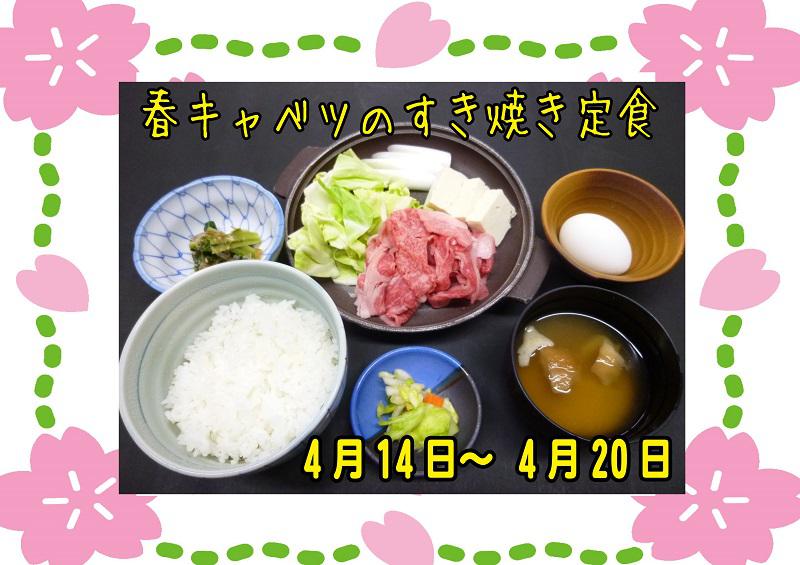 今週は!「春キャベツのすき焼き定食」です(*^_^*)