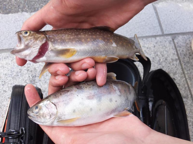 イワナ、やまめをゲットしてご満悦の若者。話によれば、今春初めて中津川で釣りをして、生まれて初めてイワナをゲットして以来渓流釣りのとりこになってしまったとか。今日も獲物を披露に白川荘に立ち寄ってくれました。渓流釣りも今月末で禁漁となりまーす。