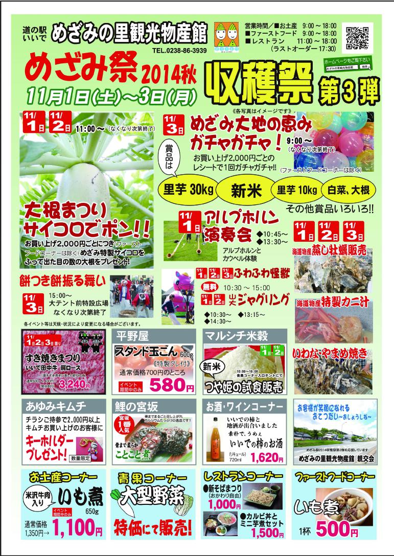 11月1日(土)〜3日(月)に、めざみ祭2014収穫祭第3弾を開催します。
