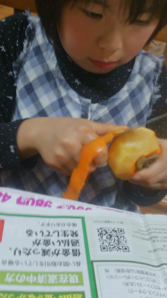 またまた1ヶ月ほどあいてしまいました!!最近の三女の進歩果物の皮がむけるようになった事。ちょっと恐くて見ていられないが、みんなが通る道!段々長くむける様になって喜んで見せてくれます。大きさは1/2くらいになりますが・・・。三姉妹とも「食べたい!!」という気持ちが強いため、自主的にこの様な行動になるようです笑