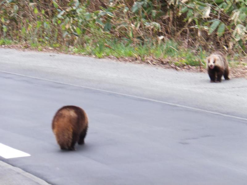 朝からお熱いアナグマのカップルさん。車が近づいても逃げるどころか、「邪魔しないでくれ。」と言わんばかり。取り込み中どうもスミマセンでした。