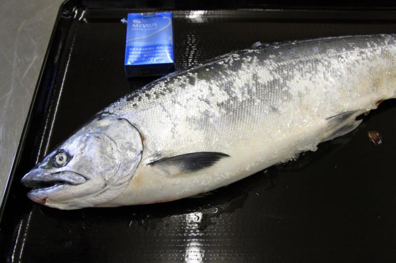 少し小ぶりですが、ピカピカのサクラマスが手に入りました。料理長が腕を振るっています。