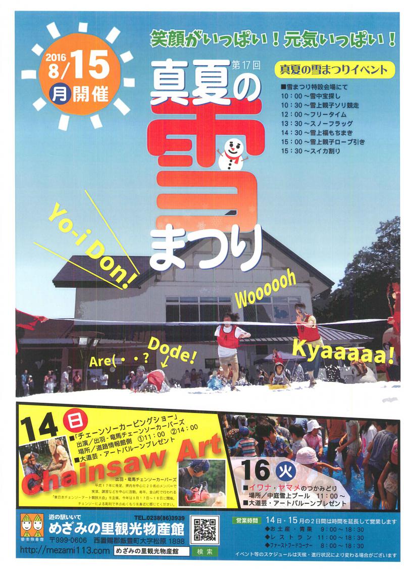 毎年も8月15日は道の駅いいで・めざみの里観光物産館に雪がきます!