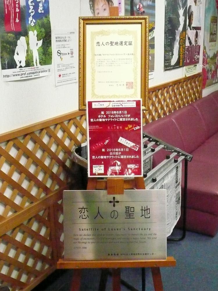 恋人の聖地プレートはフォレストいいで、白川荘の2か所にフロント回りにて飾られております。今だけ限定でプレートを持って記念撮影出来ますよ。フォレストは恋人の聖地プレート。白川荘は恋人の聖地サテライトのプレートになります。2か所コンプリートしてみては如何かな?御利益あるかもしれませんよ( *´艸`)なおラブロックや記念撮影したらこんな事がありました。など面白い話はどしどし受付中です( *´艸`)