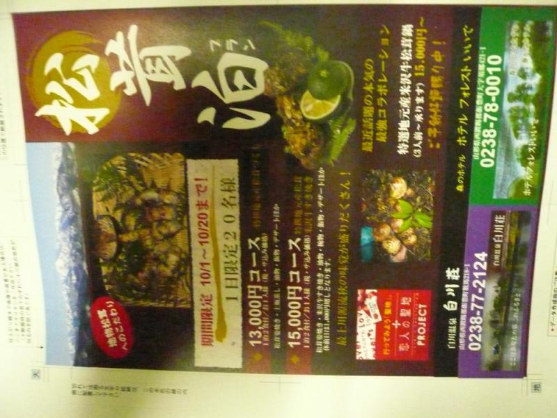 これまたあんまり雨が降りすぎても松茸に影響が出るんだよね(*_*;今シーズンの松茸プランのチラシか完成致しました。詳しくはふるさと公社須貝迄。
