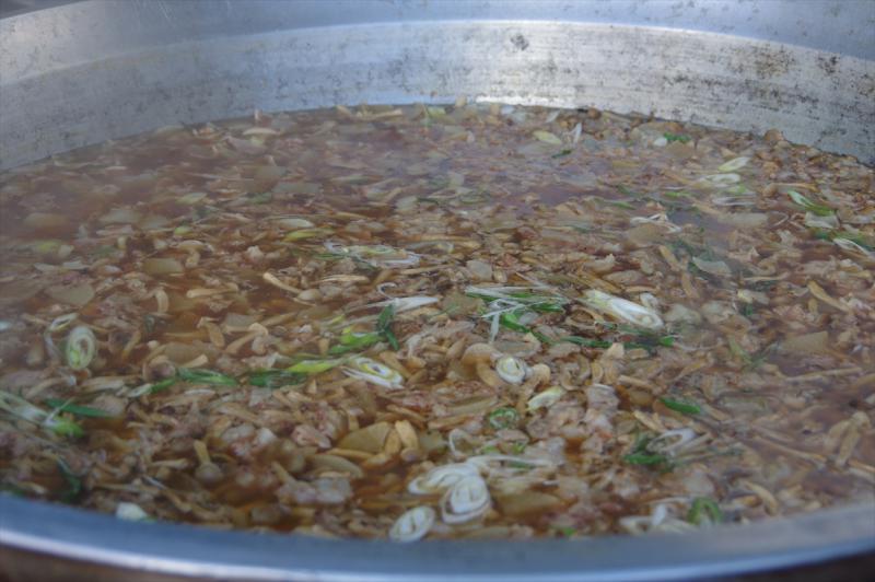 屋台コーナーのカニ汁、牡蠣蒸し、どんどん焼き、イワナ・ヤマメの塩焼き、山形の名物いも煮など