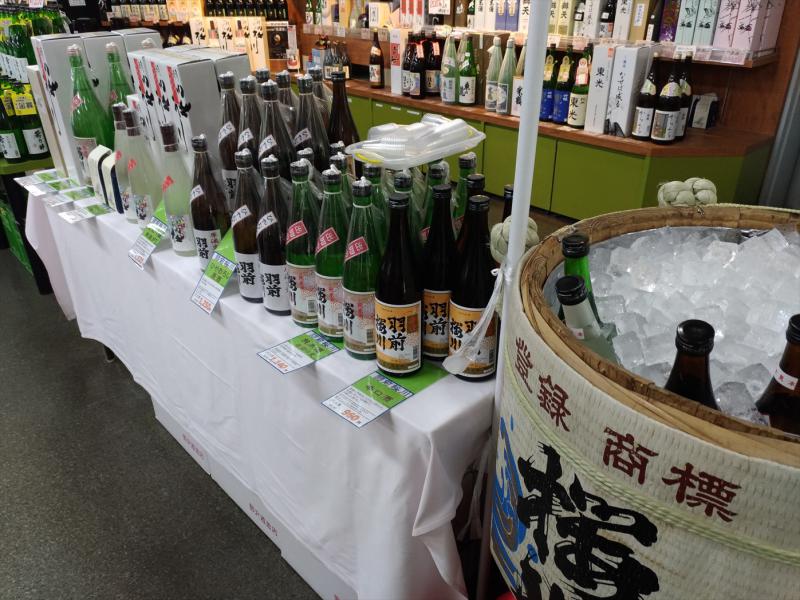 お酒コーナーでは、小国町の野澤酒造店「桜川」の試飲販売を開催中!