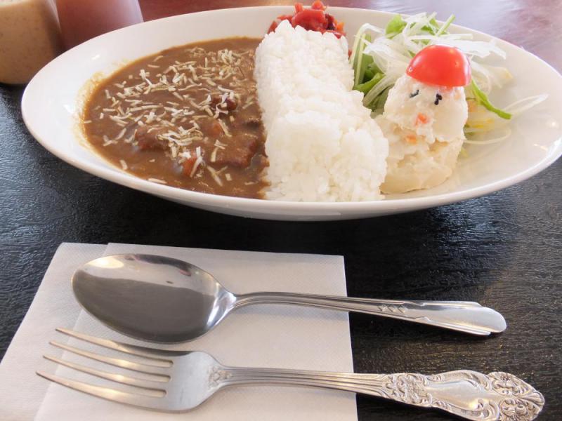 お待たせしました。白川ダムカレーがいよいよ本日デビューしました。ダムの湖面に雪がチラつき、雪だるまの里から赤い帽子をかぶったダルマさんが、一杯850円だよと言ってます。是非食べに来て下さーい。