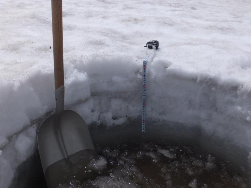 パークゴルフ場、ただ今の残雪量は50cmです。間もなくGWだというのにトホホ・・。毎日「パークはいつから?」の問い合わせが続いてます。ここまで融ければあと4〜5日で地面が顔を出します。桜満開の話題で一杯ですが、ホント雪が残ってます。