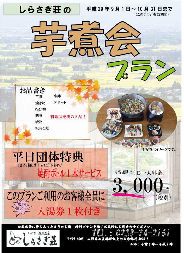 この1週間は雨予報です。 これくらい涼しくなるとあれが食べたくなります。 『芋煮』 今年もしらさぎ荘の芋煮プランで楽しくお過ごし下さい。ご予約お待ちしておりま〜す!