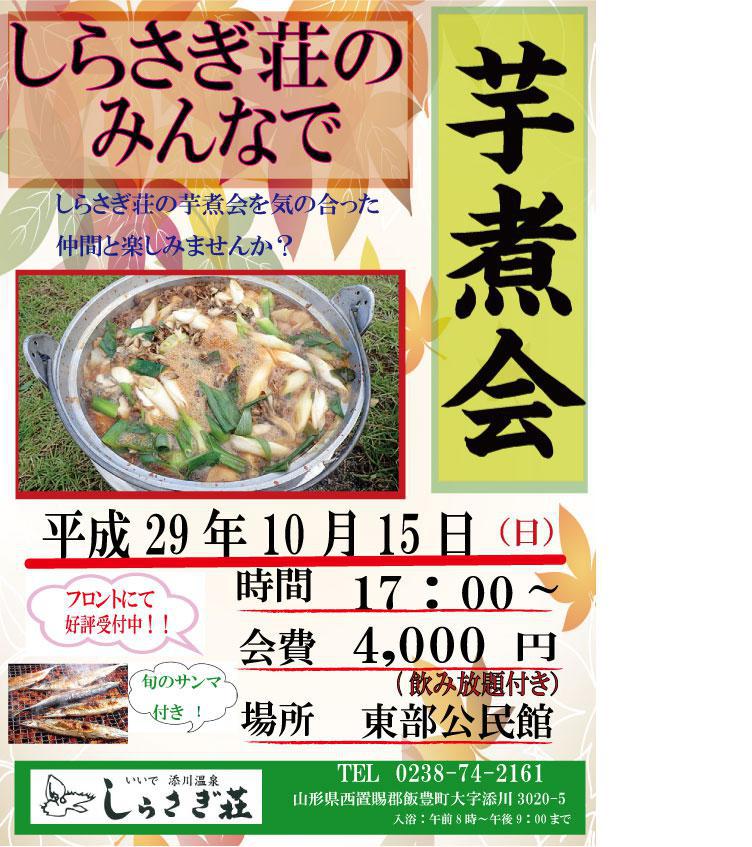 10/15(日)しらさぎ荘のみんなで芋煮会を開催いたします!皆様のお越しを心よりお待ちしております♪