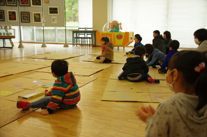 段ボールを貼り合わせた大きなキャンバスに落書きを楽しんでいただきましたよ〜〜〜