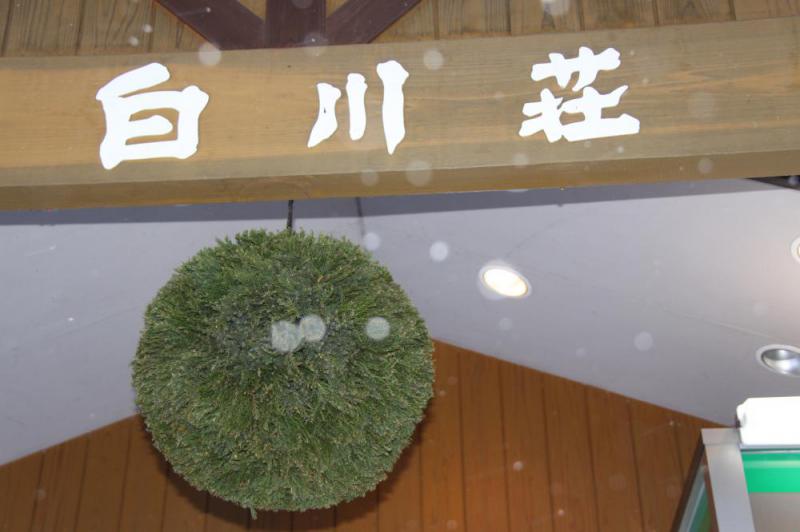 白川荘玄関の軒先には、「どぶろくが出来ましたよ。」のサインとなる杉玉が吊下っています。この冬も、白川荘自慢のどぶろくで皆様方をお待ち申し上げております。