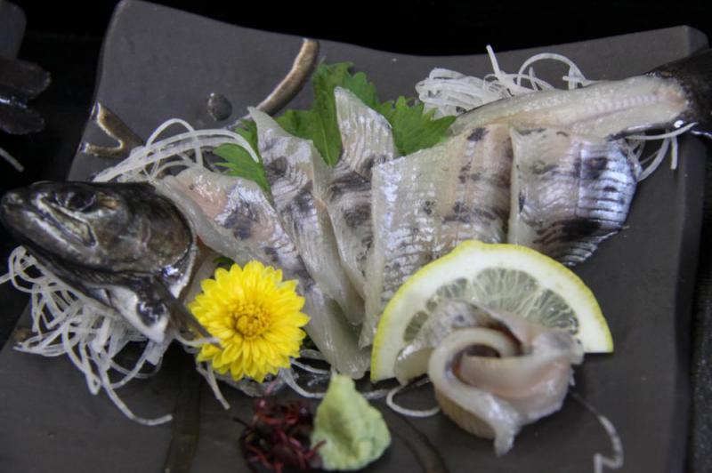▼ご当地名物 「ヤマメの活造り」