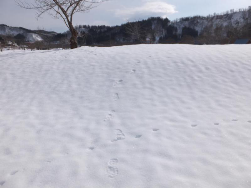 昨日の午前中、雪原のどこを歩いても 全然ぬかることなく どこまでも歩ける 固雪 (この辺ではかたゆきと呼ぶ) 状態でした。大寒の時期に固雪になることはホントに珍しい事。しかも午前中うち続きました。この冬もちょっと変だよなぁ。