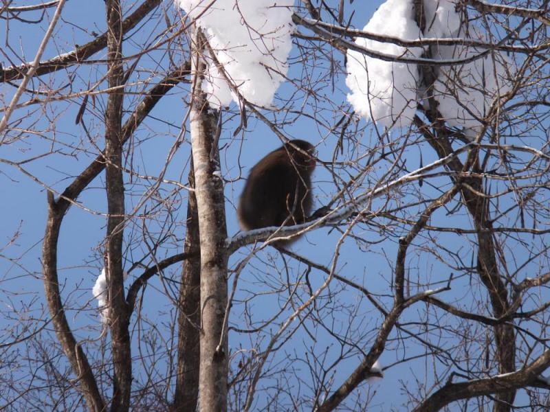 この寒い真冬のさなか、木の上でポツンと一人ぼっち。いったい何を食って生き延びているんだろう。こいつも「早ぐ、春来ねがなぁ。」って考えているんだべな。