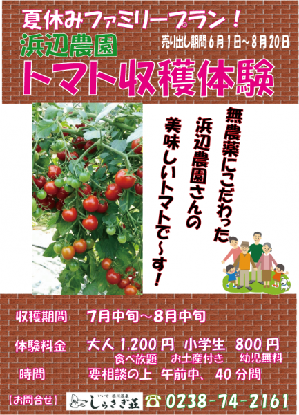 夏休み、何かしたいと思ったら飯豊町浜辺農園のトマト収穫体験はいかがですか?無農薬にこだわった美味しいトマトですよ〜! ご予約待ってま〜す!