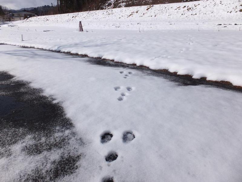 昨日一日で辺りは真っ白のな世界に変わりました。パークゴルフ場にはプレーヤーに変わって山ウサギがピョンピョン跳ね回ってます。