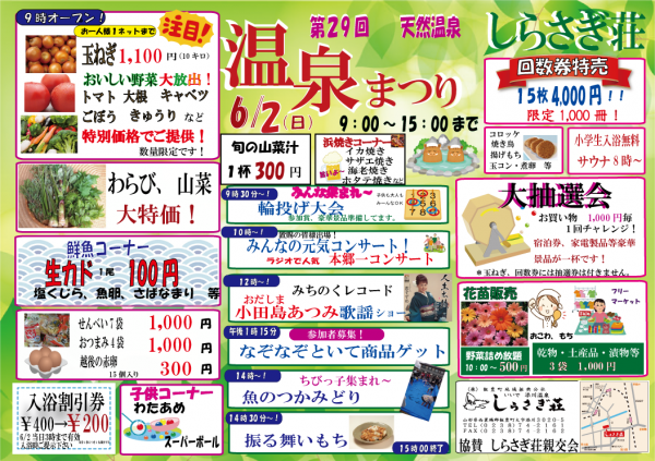 ▼第29回 しらさぎ荘温泉まつり6/2開催!