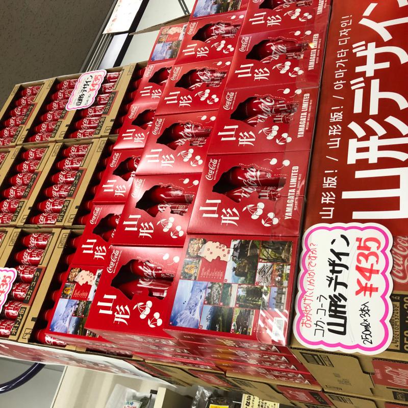 新発売!コカコーラの山形デザイン缶!!パッケージも!!250ml×3本+専用箱付きで435円!!