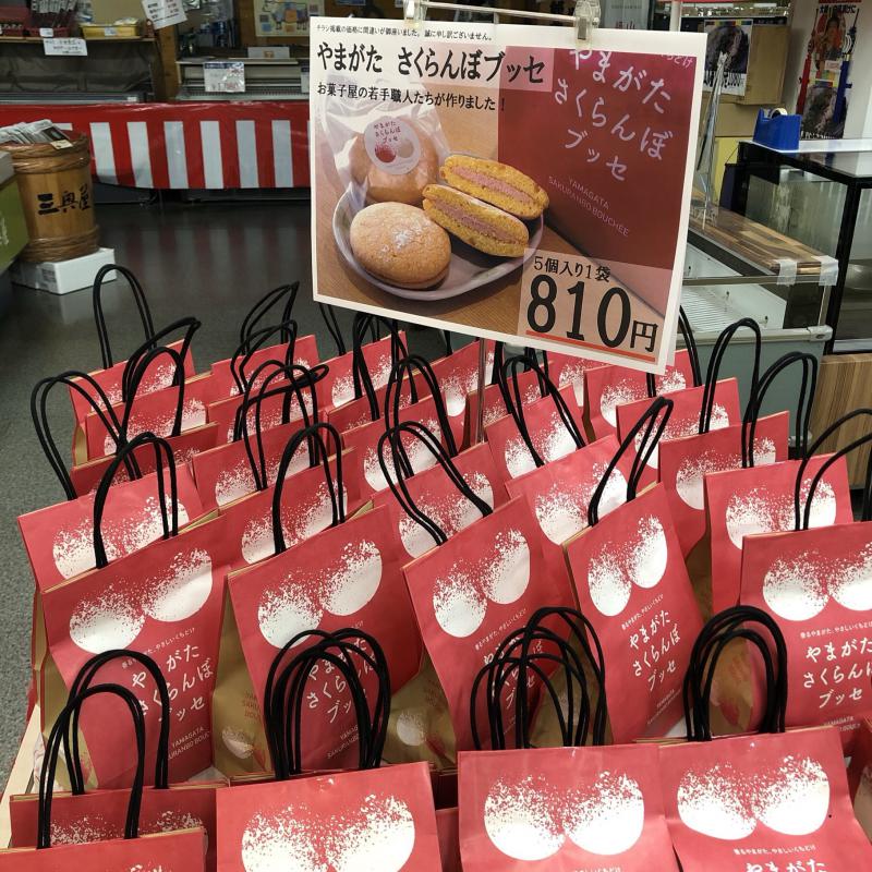 お菓子屋の若手職人たちが作りました!香り豊かなさくらんぼクリームをサクッと固めの生地でサンドしたこだわりのブッセです!