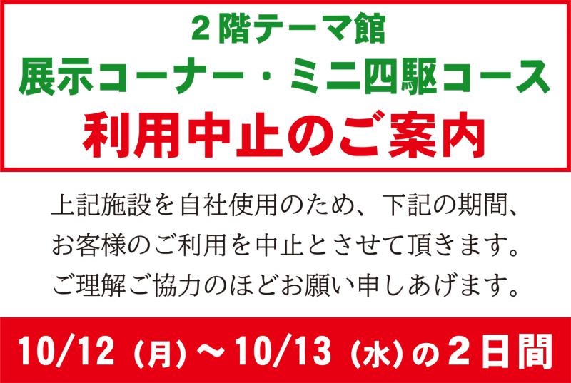 ▼2階展示コーナー、ミニ四駆コース利用中止のご案内