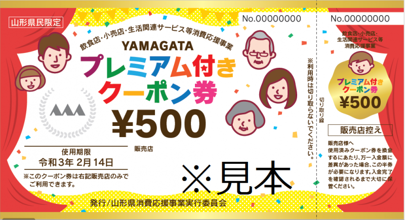 お陰様を持ちまして、山形県プレミアム付きクーポン券は完売しました。