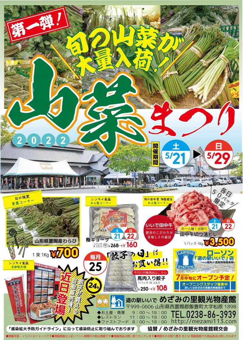 毎年恒例、山菜まつり!今年は5/21〜5/29まで開催します!わらびを始め、こしあぶら、たらの芽、しどけ、山うど、みず、うるいなど旬の山菜を取り揃え皆様をお待ちしております!!