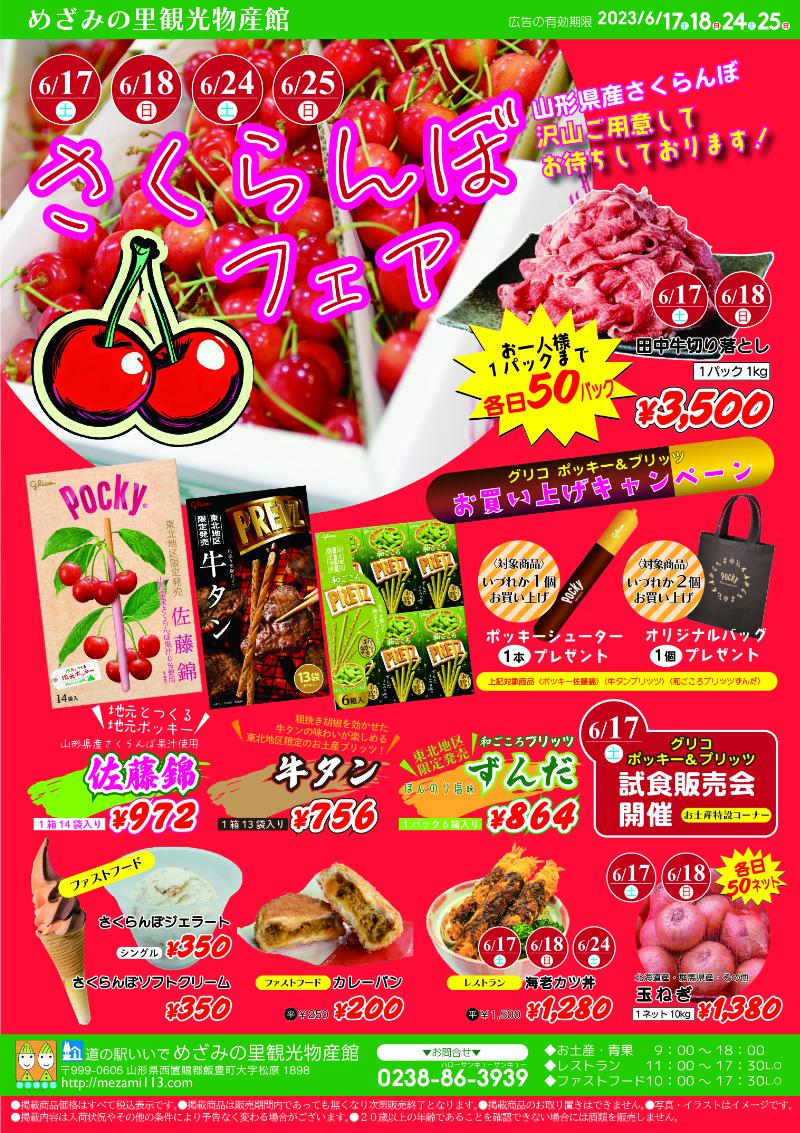 大人気肉の田中屋では6/17.18の二日間、田中牛切り落とし1キロ1パック3500円で販売。その他さくらんぼソフトクリームやジェラートの季節限定商品や、ご当地ポッキープリッツの試食販売会などを開催!その他お買い得商品を多数取り揃えて皆様のお越しをお待ちしております!