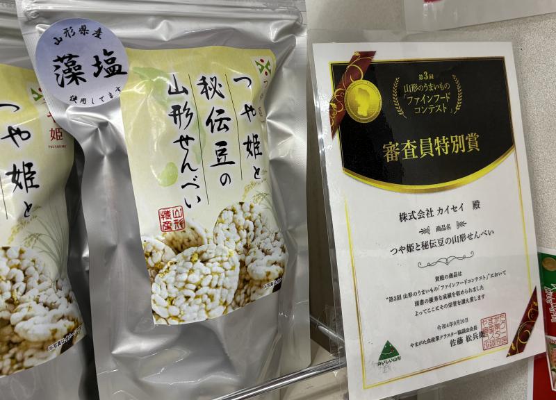 ▼つや姫と秘伝豆の山形せんべい!