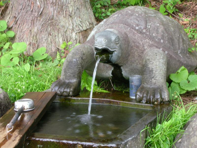 現在、山形市山辺町畑谷にほど近い所の路傍に、湧水「亀の子水」を発見しました。昔、この山村に生まれ育った亀之助さんは、後に山形県上山市長になり、当時山形市と白鷹町を結ぶ街道が狭く往来が大変なことに心を痛め、故郷のことを思って道路整備を行いました。後年、そのことに感謝する形で畑谷地区の住民はその途中の道路脇に、写真の水飲み場を作り亀之助さんの功績を記する意味で「亀の子水」と名付けたのでした。