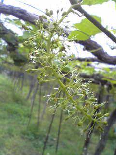5月28日、現在のデラウェア種です。花が咲きました。ぶどうの花にも香りがありとても甘いいい香りがします。