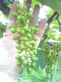 現在のデラウェアです。房は手のひらぐらいになり、粒はマッチのボウの先端ぐらいになってきました。収穫が7月20日ごろなので、あと40日ぐらいです。