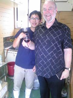 8月4日に国産ワインコンクールの審査員で来日していた、ワインジャーナリストのデニス・ギャスティンさんが株式会社醸造産業新聞社の記者である佐藤吉司さん(通訳も兼ねて)と一緒に弊社(佐藤ぶどう酒)にご来店頂きました。工場の機械や仕込む品種、栽培品種などいろいろと取材をうけました。最後に白3点赤4点のテイスティングをお願いして、細かいワインのコメントをしていただきました。このコメントは一生の宝ものになるかもしれません。午前中の2時間ちょっとでしたが、内容はとても濃いものになりました。