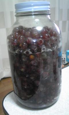 発酵はまだしていませんがぶとうの重みで果汁が瓶の七割ぐらいまででてきました