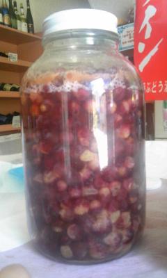 デラウェアのマセラシオンカルボニック、発酵四日目です。完全に発酵が始まりました。