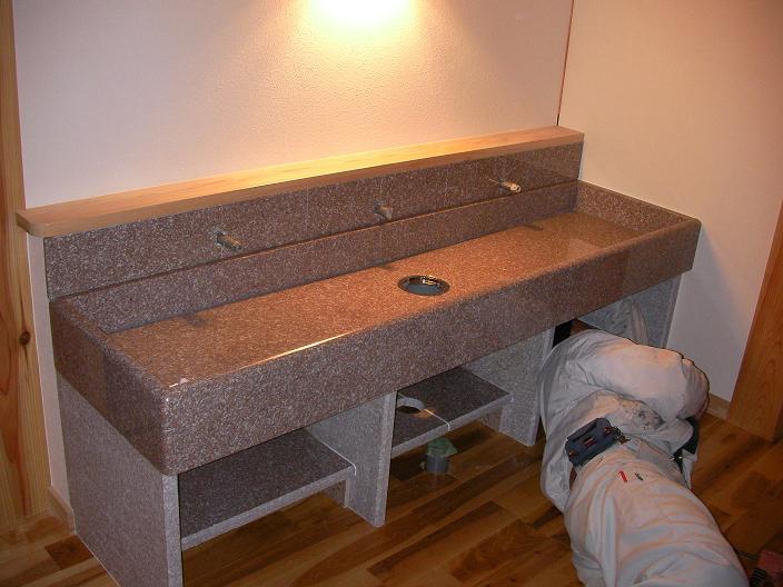 昨日の記事にありました保育園の手洗い場ですが1か所終わりました。←なかなかいい出来です。すべて自己完結できる体制だからできたと自負しております。石での製作を依頼してくださった設計事務所の先生に感謝します。