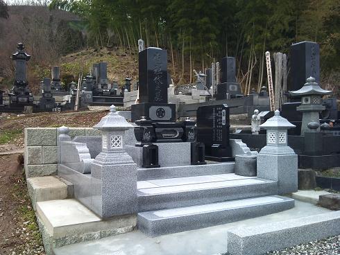 ○お石塔リフォーム。 8.0×6.6(尺)お石塔の上から3段は今まであったものを磨き直しをさせて頂き再建立です。既存の黒御影部分はアフリカ産の石材でしたのでそれに合わせて墓誌と花立、経机、ローソク立てともアフリカ産の同材で製造しました。ご先祖様が建てられたお墓を大事にされたいというお施主様のお気持ちを大切に致しました。山形県寒河江市に施工させて頂きました。2010年4月お引き渡し。