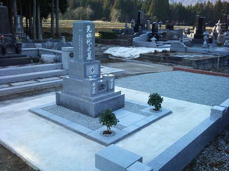 ○シンプル和型 6.0×7.0(尺)面積が非常に広い墓地になりますがお施主様のご希望でシンプルな和型に。山形県県南の置賜地方に以前から多く建立されている形です。山形県長井市に施工させて頂きました。2010年4月お引き渡し。