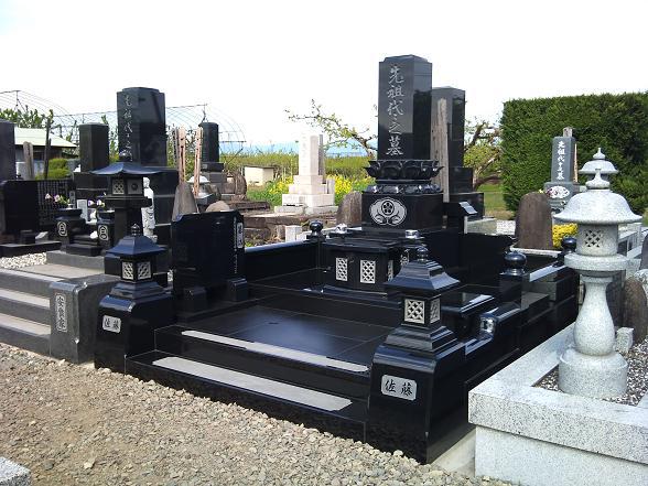 ○うるおい型上下蓮華付き11号 9.0×9.1(尺)お石塔は機能的なご納骨の仕組みが人気のうるおい型。 インド産黒御影石を使用です。また外柵も黒御影石をご希望でしたのでこちらは中国産MDを使用しました。どっしりとした重量感を感じる作りになっています。山形県寒河江市に施工させて頂きました。2010年5月お引き渡し。
