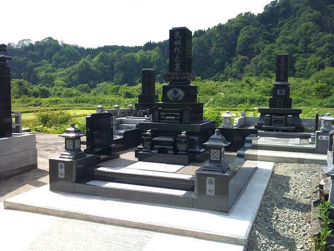 ○上蓮華付き地上納骨堂 9.0×10.0(尺)地上納骨堂は雪深い地方には多くみられる形ですが、今回施工させて頂いた場所は山形県内では豪雪地帯。雪が多く降ってもお石塔が見えるようにというお客様の思いがありました。外柵も吸水率の低い石で雪害、凍害に万全を期しました。山形県小国町に施工させて頂きました。2010年6月お引き渡し。