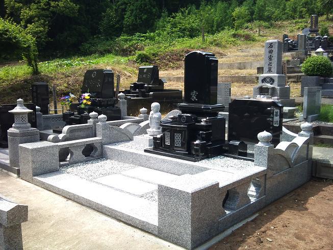 ○ハナアヤメ型+セレブ型 10.0×8.8(尺)弊社のデザイン設計室の担当者が一番お気に入りの外柵、ハナアヤメ型。外柵の羽目(塀の様に囲みの部分)にあやめの花をデザインした作品です。広々とお参りスペースを確保し、階段も低く1段のみに設置しております。位牌の形からデザインしたセレブ型との組み合わせもとてもマッチしています。山形県長井市に施工させて頂きました。2010年7月お引き渡し。