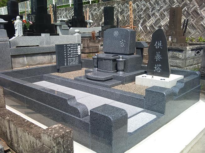 ○洋型石塔 10.0×8.0(尺)今回はお施主様のご希望寸法をもとに設計させて頂いた洋型墓石です。何度も図面を提出させて頂き、古いお墓の再利用も含めご提案を繰り返しました。弊社のほかにもご検討された石材店があったようでしたがご提案内容とお見積り金額で当社を選択頂きました。山形県朝日町に施工させて頂きました。2010年8月お引き渡し。