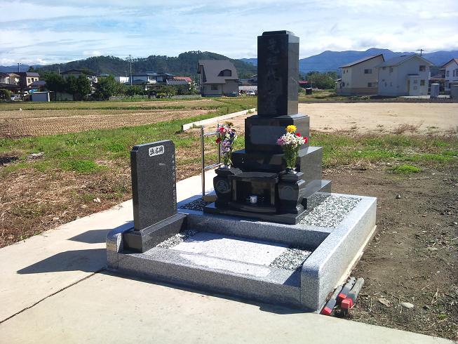 ○シンプル和型 6.0×7.0(尺)シンプルな1尺角の和型石塔です。水の吸い込みが極端に少ない南平黒という石を使用し、お石塔を作りました。雪の多い地方には吸水率の小さい石は特に安心です。山形県米沢市に施工させて頂きました。2010年9月お引き渡し。