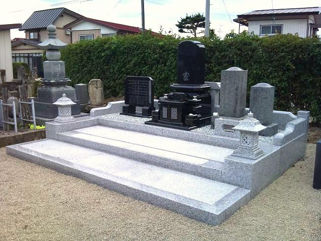 ○セレブ型 13.0×10.0(尺)もともと大きな墓地で、いまは枯れた木の根や判別不能になっているようなお石塔が多く建ち並んでおりました。この度ご不幸があったのを機に整備と新設。ゆとりのある設計でお施主様もご予算内での完成にご満足いただけました。山形県長井市に施工させて頂きました。2010年10月お引き渡し。