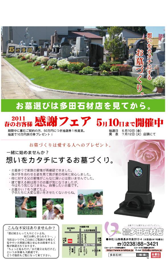今日から3月1日。我々業界も冬眠から覚め本格的に動きだす時期になりました。本年も春のお客様感謝フェアを開催致します。全国優良石材店の会の感謝フェアと併催しますので5月10日までのロングランです。オリジナルのぼりも完成。オリジナルなのに弊社の名前を入れませんでした(@_@)まっいいか的に処理…。都内で親戚がレタリングの会社を営んでて、デザイン校正含め2日半日で届きました\(◎o◎)/!さて天気と相談して看板の掛け替えを行います。まだまだ墓地には2m近くの積雪がありますので気が早いと感じるかもしれませんがゆっくり時間を掛けて一緒にお墓づくりをさせて頂きたいと思います。お墓づくりをお考えの方はお気軽に弊社展示場をご覧ください。一生に一度のお買いものへのヒントが見つかるはずです。