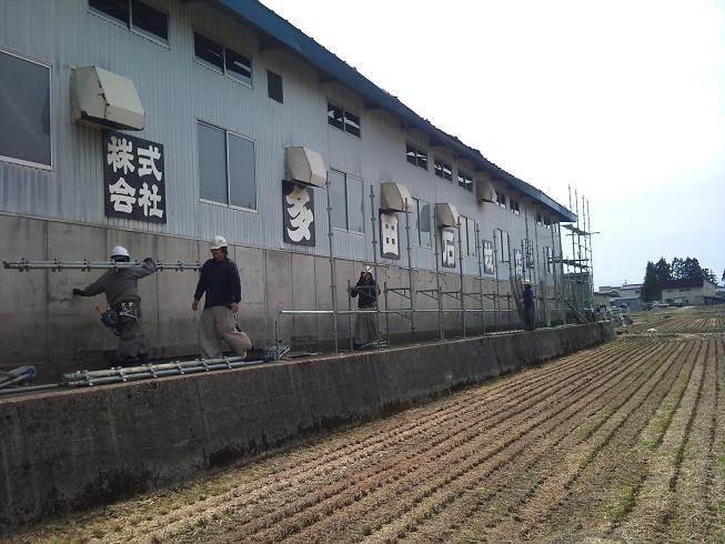過日の記事に書きましたが今年の大雪で工場の屋根が壊れました…。その修復がようやく始まります。…全面葺き替え(*_*;今日足場が組まれています。屋根の修理は連休明けまで掛かりそうです。信じよう、日本!頑張ろう、日本!